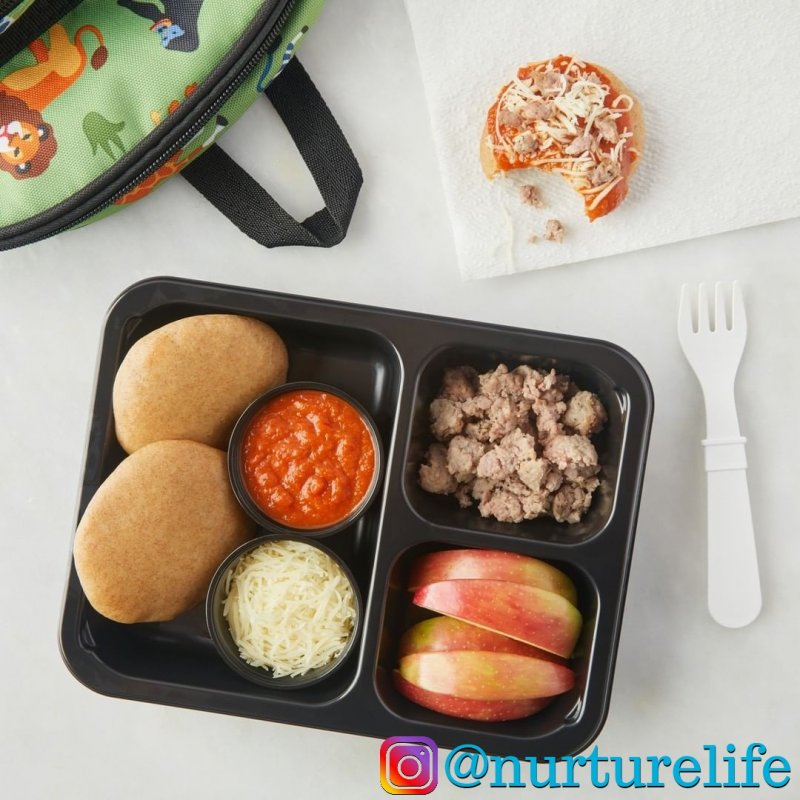 Choices for Toddlers from 1-4 include a delicious pot roast which combines slow-braised beef, carrots, onions, and celery with a side of mashed cauliflower potatoes. Kids from 5-10 can experience food from another culture with Nurture Life’s mini pupusas—Central American flatbread made from corn masa stuffed with chicken and beans—paired with roasted corn and zucchini. Cold Lunches offer such yumminess as mini cheesy tortellini tossed in nut-free pesto (blended with spinach), served with grilled chicken breast slices and baby carrots.